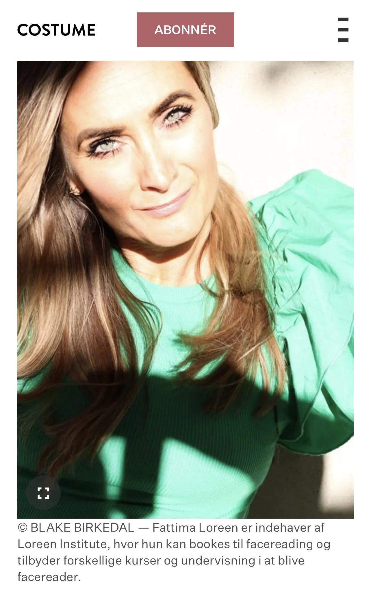 F A t t i m a l o r e e nPRESS↓ nedenfor kan du se nogle af de fine artikler som der er skrevet om Facereading og fattima loreen. Læs og forstå DIT ANSIGT Naturligt løft Morgenmad med Fattima Loreen Det fortæller dit ansigt om dig SJÆLEN SIDDER (OGSÅ) I NÆSEN Sådan undgår du, at bekymringer sætter sig i din krop hvad fortæller dit ansigt om dig? Facereading BEHANDLINGER der gør en forskel Artikel OM Selvudvikling HVAD DIT ANSIGT FORTÆLLER Ansigtet afslører, hvem du i virkeligheden er